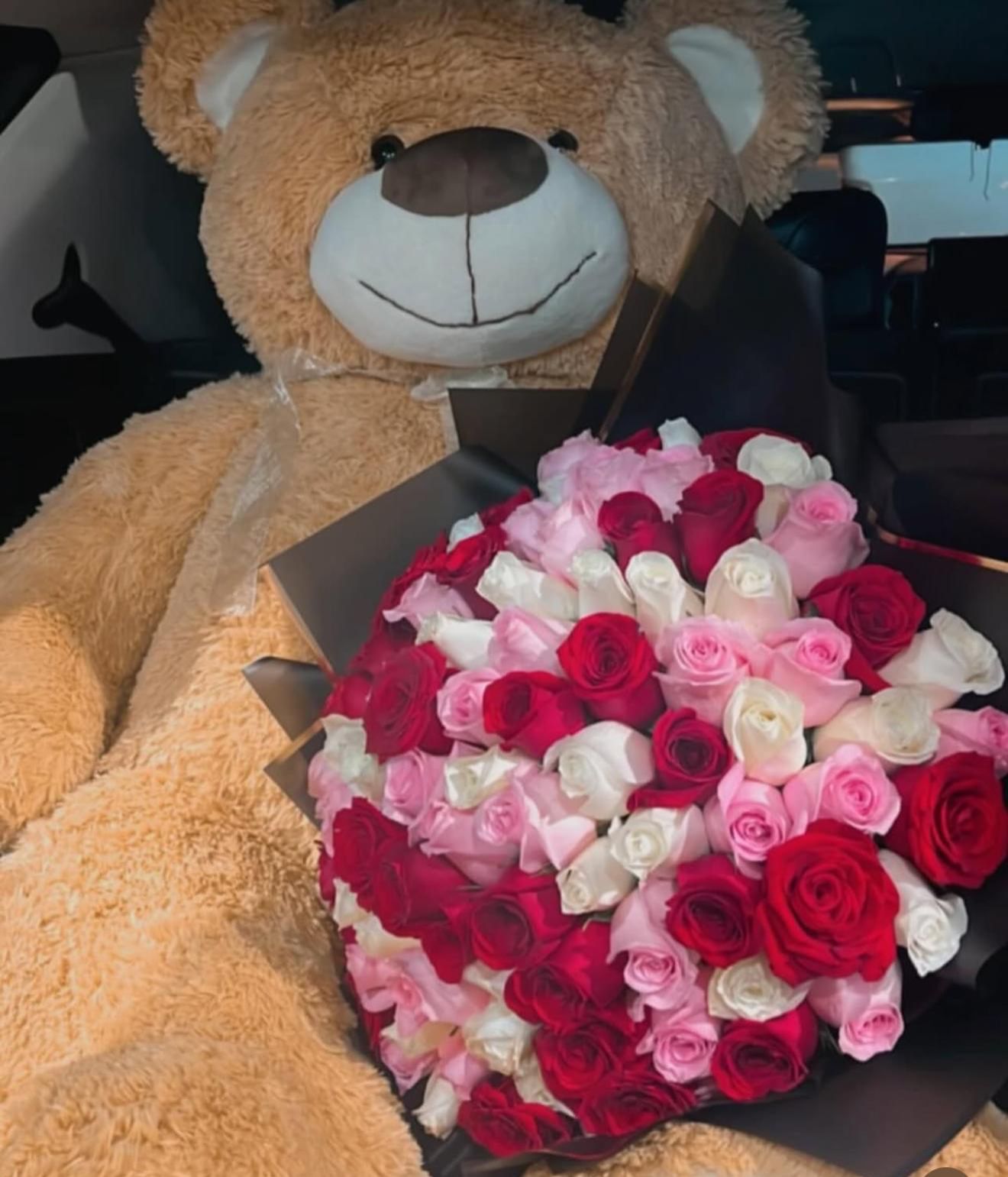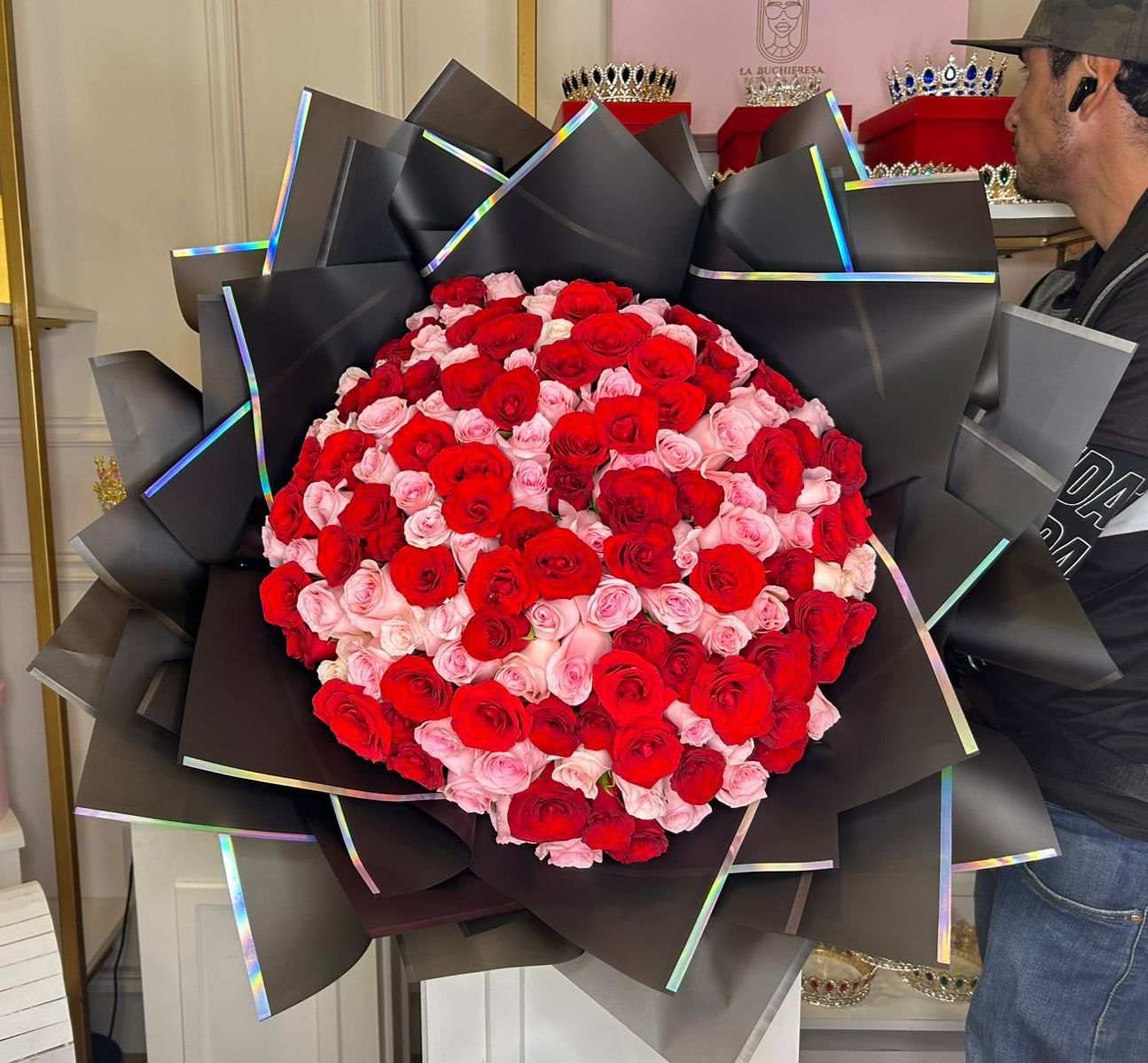 Hermoso y alegre Ramo de 100 rosas tricolor en tonos rojo, blanco y rosita premium envuelto en papel coreano de lujo. Una combinación perfecta de pasion, ternura y elegancia 🌹🌸